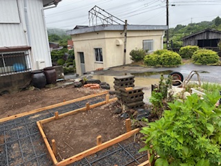 前半で手伝いに入った芳野くんも暑さに項垂れながらイメージに賛成してくれた。小さな畑をさらに小さく花壇風にセメントで区切るのだから笑っていました。芳野くんの畑は私の畑の何十倍もあり、耕運機で耕す規模を管理しているので半ば呆れているのかな?