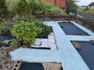 梅雨時は雨が多いのだが、昨年は比較的雨は少なかった。実は昨年も工事をした。昨年は家の周りを砂利からセメントにしてる。それでも隙間から雑草は生えて、見つけては除草剤の力で根こそぎ退治する。